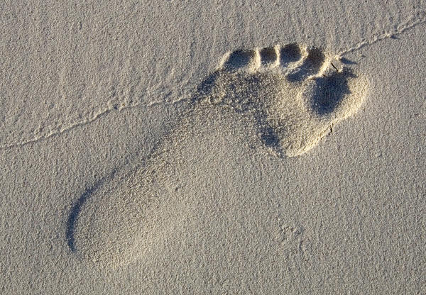 a single footprint impressed into a sandy beach