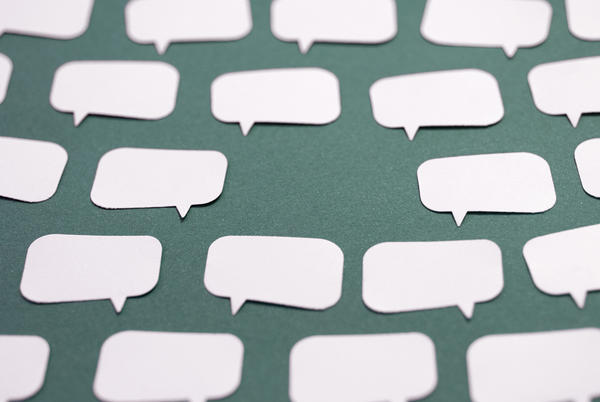 Concept Image Leaving Space for Thought - Blank Word Bubbles Arranged Neatly on Green Background with Gap