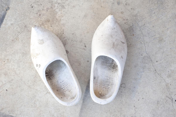 shoes, clogs, wooden, grunge, concrete, dirty, dutch, holland, neatherlands, concept, plain, undecorated, simple, poor, old, out of date License: