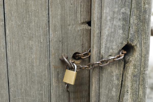 old, rustic, metal, chain, door, grass, lock, locked, security, wooden, wood, aged License: