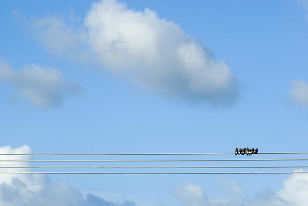 Row of birds on high voltage cables-9005