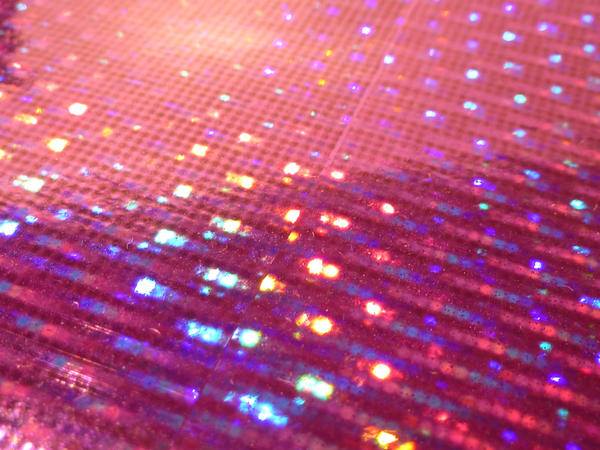 colorful spots of light reflecting from a p ink coloured metallic background