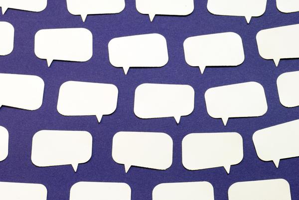 paper speach bubbles make a conceptual background representing customer feedback, discussion and organised debate