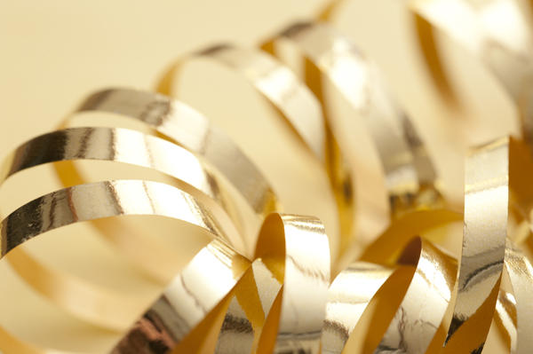 festive, gold, metallic, party, spiral, streamer, shiny, coiled, decorative, packaging License: