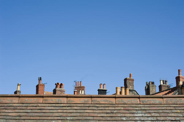 blue, sky, background, old, chimney, city, architecture, tiles, architectural, roofing, exterior, facade, houses, traditional, england, tiled, residential, english, housing, estate, dwellings, homes, pots, rooftops, chimneys