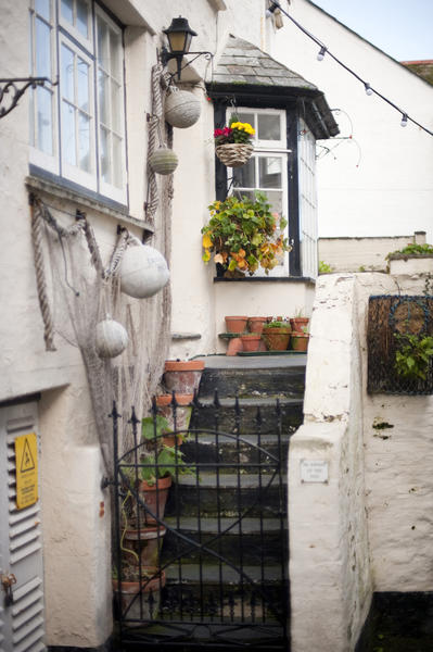 house, entrance, picturesque, traditional, fishing, village, steps, houseplants, tourist attraction, quaint, cottages, bay window, cornish, cornwall, polperro