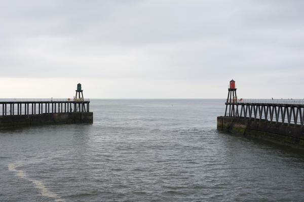 ocean, pier, coastal, warning, navigation, nautical, marine, guide, lights, england, port, channel, shipping, harbour, breakwater, seawall, whitby, north yorkshire, defences, beacons License: