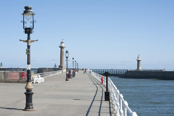 blue, breakwater, england, english, harbor, lamps, landmark, lights, north yorkshire, ocean, pier, port, promenade, resort, sea, sky, summer, water, waterfront, whitby License: