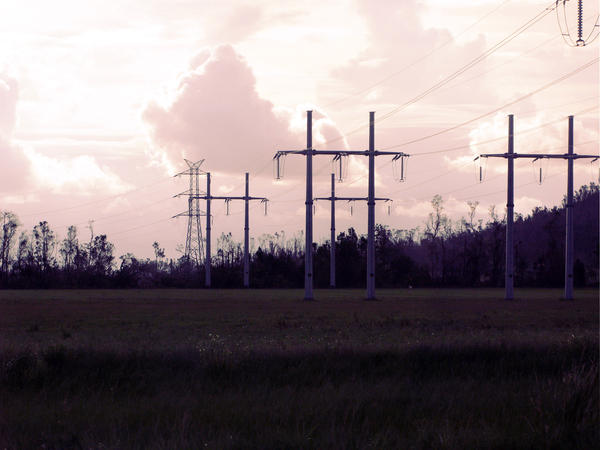 power cables crossing a stormy landscape