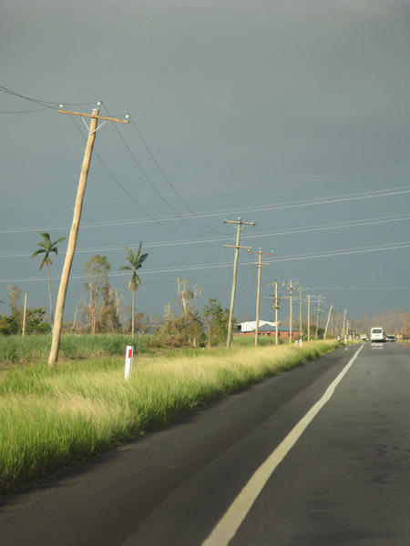 pole, leaning, power pole, power line, electric, electricity, power supply, electrical service, road, queensland, australia License: