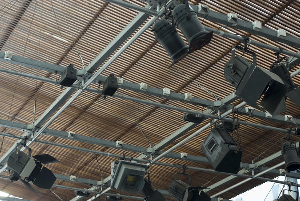 Detail of roof mounted stage lights for live performances taken in daylight when not in use