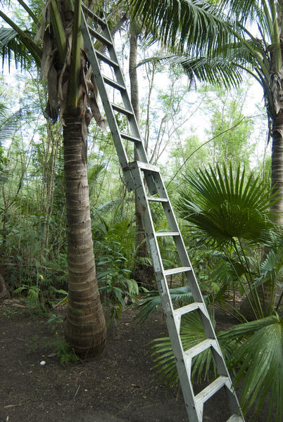 Extension ladder against a coconut palm-5987