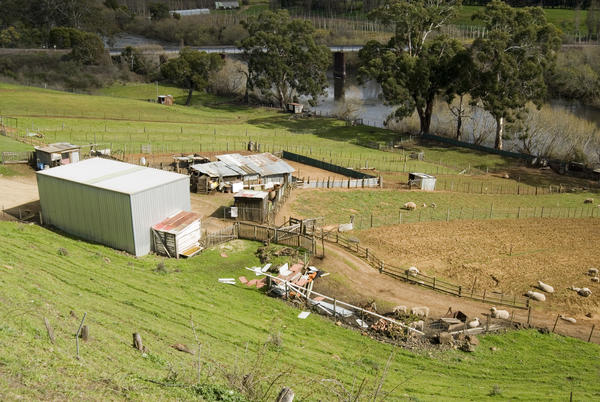 barn, farm, agriculture, farming, river, animals, pasture, aerial, bank, livestock, buildings, australia, farmyard, tasmania, smallholding