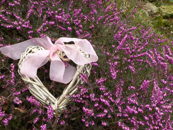bow, heart, love, ribbon, rustic, wicker, flowers, heather, pink, romance License: