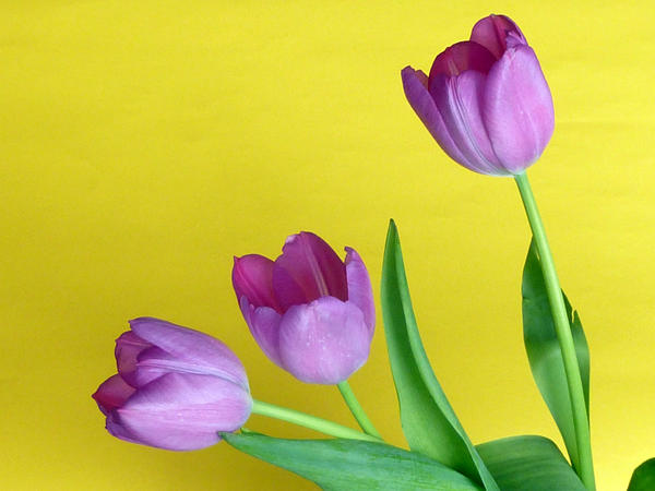 Three purple tulips on yellow background-9919