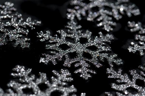 snowflake, snowflakes, black, dark, narrow depth of field, bokeh, christmas, festive, seasonal, xmas, celebration, decoration, yuletide