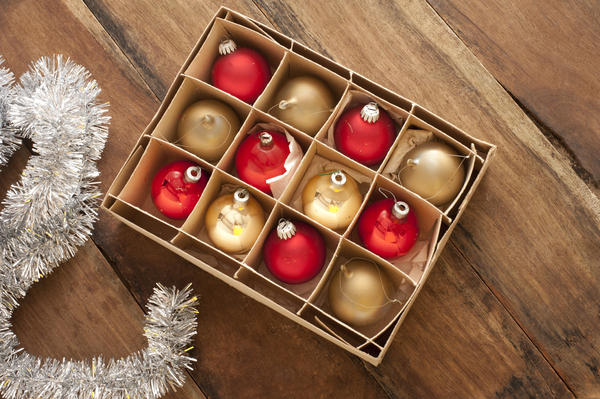 christmas, decoration, holiday, seasonal, xmas, festive, advent, celebration, balls, baubles, box, ornaments, silver, table, tinsel, red, gold