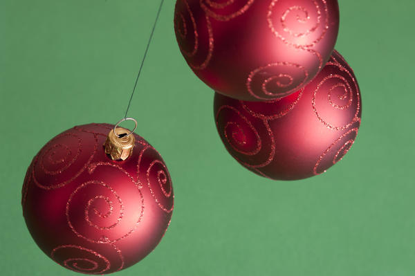 christmas, holiday, xmas, background, festive, noel, baubles, copy space, decorations, green, pattern, red, trio, hanging