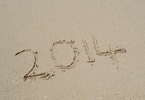 numbers of the year 2014 scratched on a sandy beach, conept of a holiday in 2014