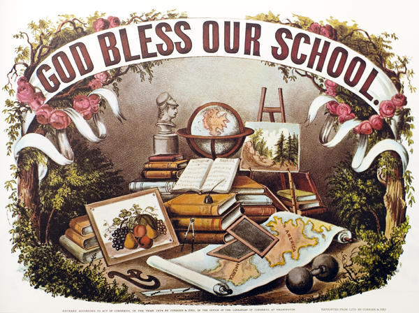 a school themed illustration, historic currier and ives lithography - out of copyright