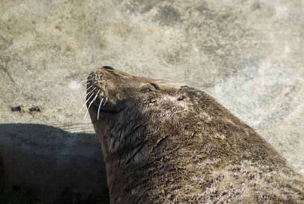 closeup on the head and wiskers of a seal on the beach at la jollia, san diego, california