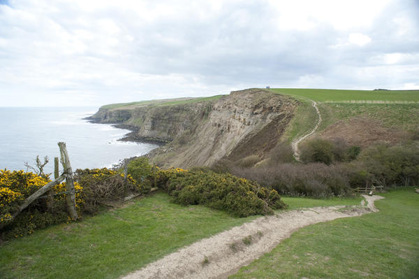 Cleveland Way footpath crossing the top of the scenic cliffs forming the North Yorkshire coastline