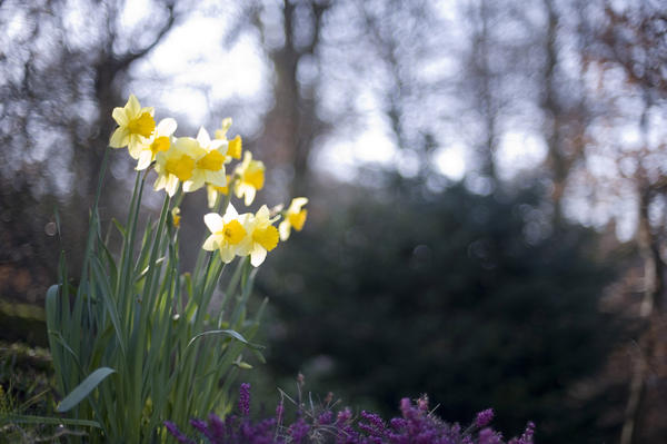 blooming, blossoming, countryside, daffodils, flowers, landscape, morning, nature, picturesque, rural, scenery, scenic, spring, sunlight, yellow, woods, woodland, forest License: