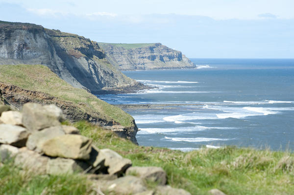 beauty, cairn, cleveland way, cliffs, clifftop, coastline, england, hole, landscape, landslip, marine, marker, nature, ocean, stones, topography, view, warning, white, yorkshire coast