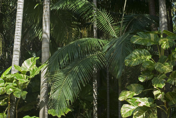 nature, vegetation, trees, environment, ecology, leaves, trunks, lush, tropical, plants, jungle, rainforest, greenery, fronds, verdant License: