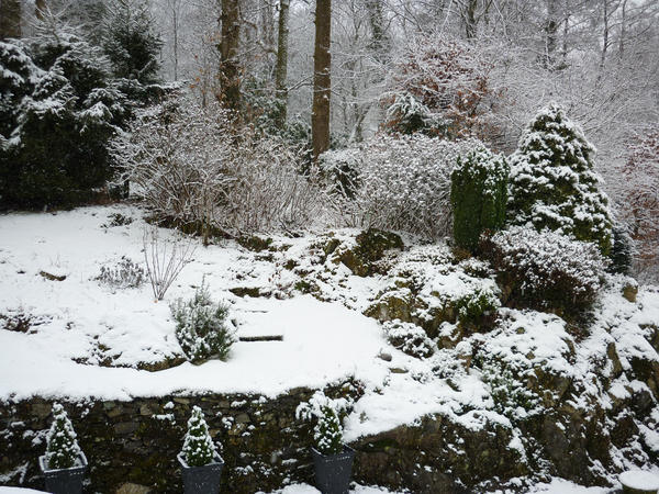 garden, trees, plants, planting, snow covered, snow fall, falling, wintery, scenic