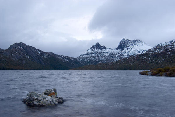 a stormy day at Cradle Mountain-Lake St Clair National Park, cold winter wind blowing across dove lake