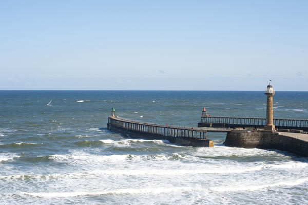 breaking, breakwater, daylight, england, harbor, harbour, horizon, lighthouse, marine, maritime, north yorkshire, ocean, pier, safety, sea, security, uk, united kingdom, waves, whitby