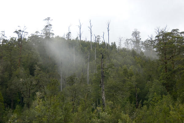 travel, nature, trees, environment, wilderness, leaves, forest, slope, trunks, branches, mist, ecosystem, variety, floating, australia, canopy, overcast, hillside, tasmania, treetop