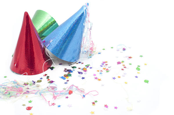 background, birthday, bright, celebration, colorful, colors, conical, different, fun, hats, party, scattered, white, enjoyment, glittery