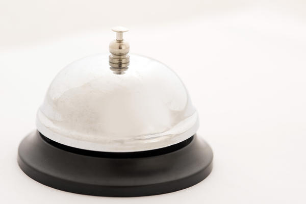 assistance, attendance, business, customer, help, reception, service, bell, ding, ring, domed, metal, silver, hotel, hospitality, plain, on white License: