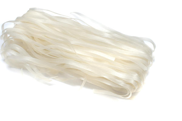 Bundle of uncooked rice noodles made from dried rice flour and used as a healthy gluten-free cooking ingredient