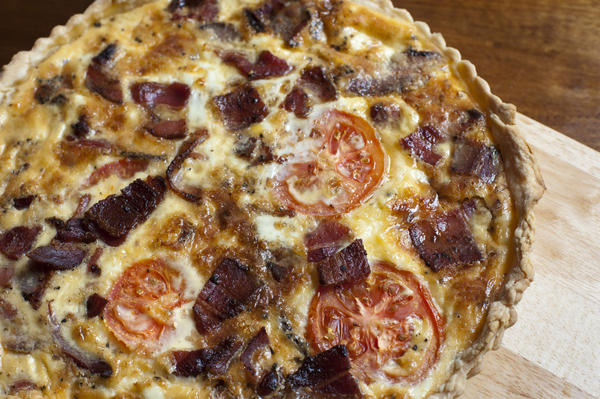 bacon, baked, cheese, cold, crust, egg, food, nutrition, overhead, pie, quiche, recipe, savoury, tart, whole License:
