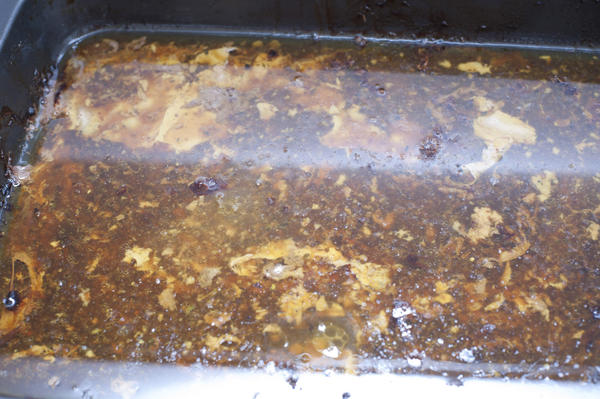 Exuded juices and dripping in a pan for basting-8052