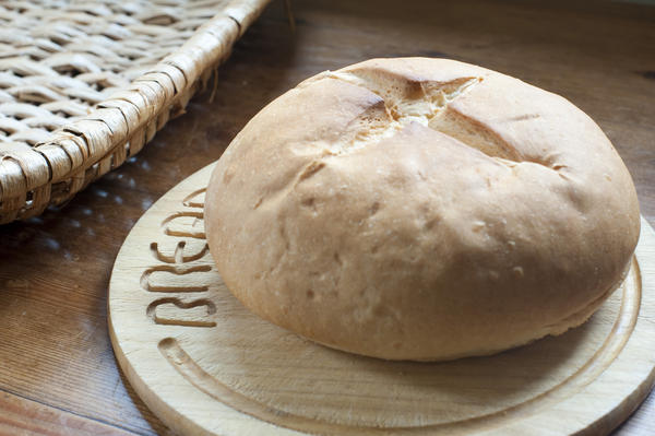 accompaniment, baked, bakery, board, bread, bread roll, cereal, cob roll, crusty, food, fresh, golden, loaf, nutrition, round, snack, uncut, wheat, whole, wooden