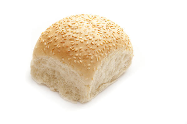 baked, bread, bun, copy space, one, roll, seeds, sesame, single, white background, white, carbohydrate, fresh, food, above License: