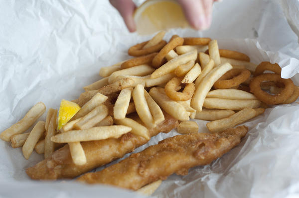 battered, chips, crumpled, deep fried, fastfood, fillets, fish, french fries, fried, hake, meal, oily, onion rings, paper, potato, seafood, serving, takeaway, unhealthy, vegetable, calamari License: