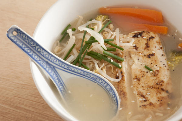 soup, broth, fish, spoon, thai, aisan, noodles, beansprouts, carrot, healthy
