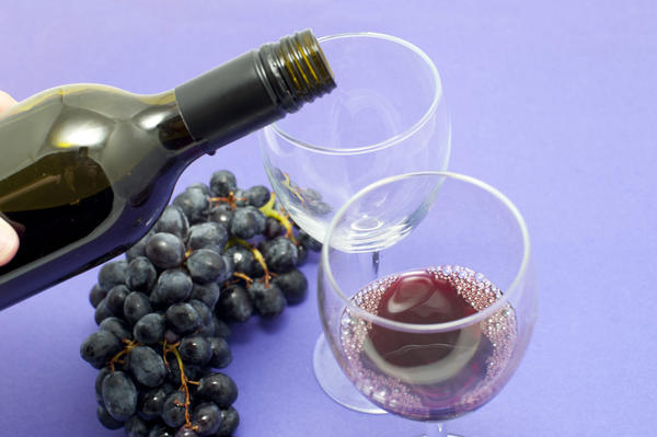 drink, glasses, natural, pouring, red, stemmed, two, wine, grapes, mauve, table, bottle, alcoholic, beverage, celebration, purple License:
