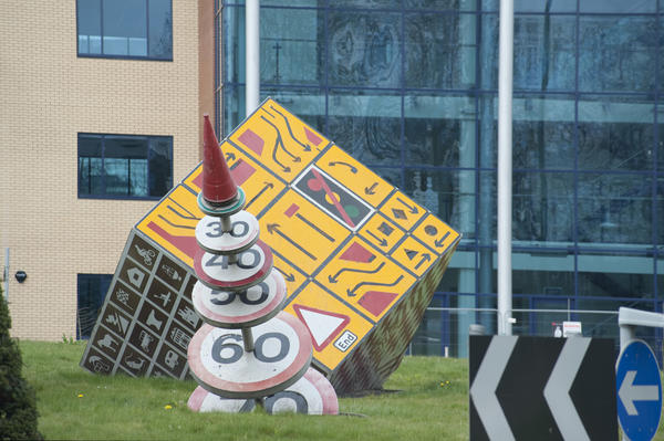 cardiff, magic roundabout, sculpture, road signs, pierre vivant, ocean way roundabout, travel, signs, geometric, traffic, artwork, welsh, splott, the landmark, modern, urban, shapes, cube, speed signs, wales License:
