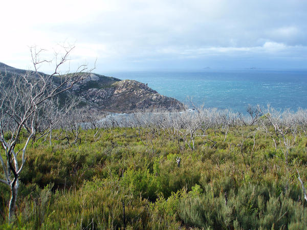 australia, coastal, view, scene, bass straight, horizon, water, land, south point, wilsons prom, heathland, scrub land