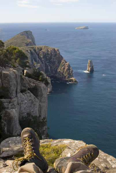 tasmania, australia, rock, coastline, formation, dolerite, view, rest, boots, hiking, activity, exercise, sightseeing, feet, cliffs