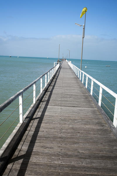 australia, beachport, boardwalk, coastal, jetty, ocean, pier, promenade, south, wind sock, sea, deserted, railings, receding, seaside
