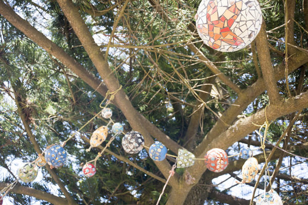 beachfront, beachport, branches, celebration, decorations, festive, hanging, holiday, ornaments, party, pine, tree, closeup, colorful, festival