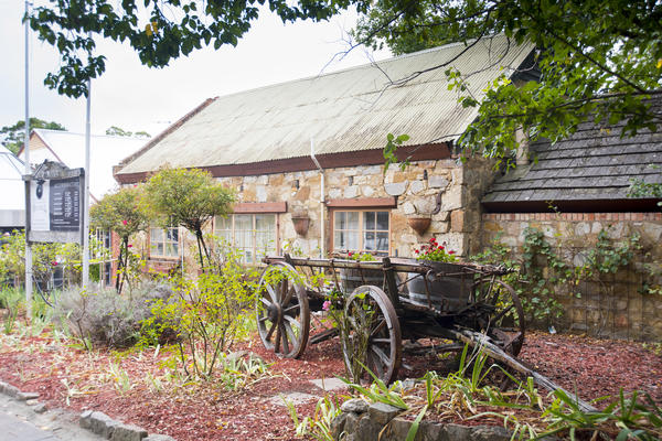 autralia, german, hahndorf, historical, town, building, cart, decorative, flowers, garden, landscaping, old, stone, vintage, wagon