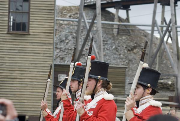 Flintlock Muskets, guns, soldier, soldiers, uniform, red coat, jacket, 1850s australia, australian